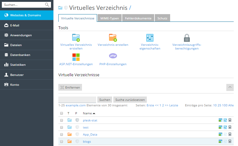 So entfernen Sie ein virtuelles Verzeichnis von einer Website: